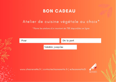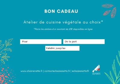 NB : ce bon cadeau d'une valeur de 65€ est valable pour l'atelier "Protéines végétales"